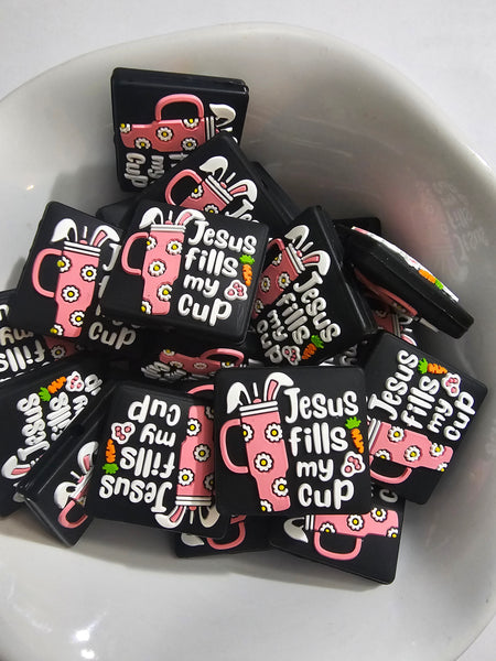 1 pc - Jesus Fill My Easter Cup Silicone Focal Bead
