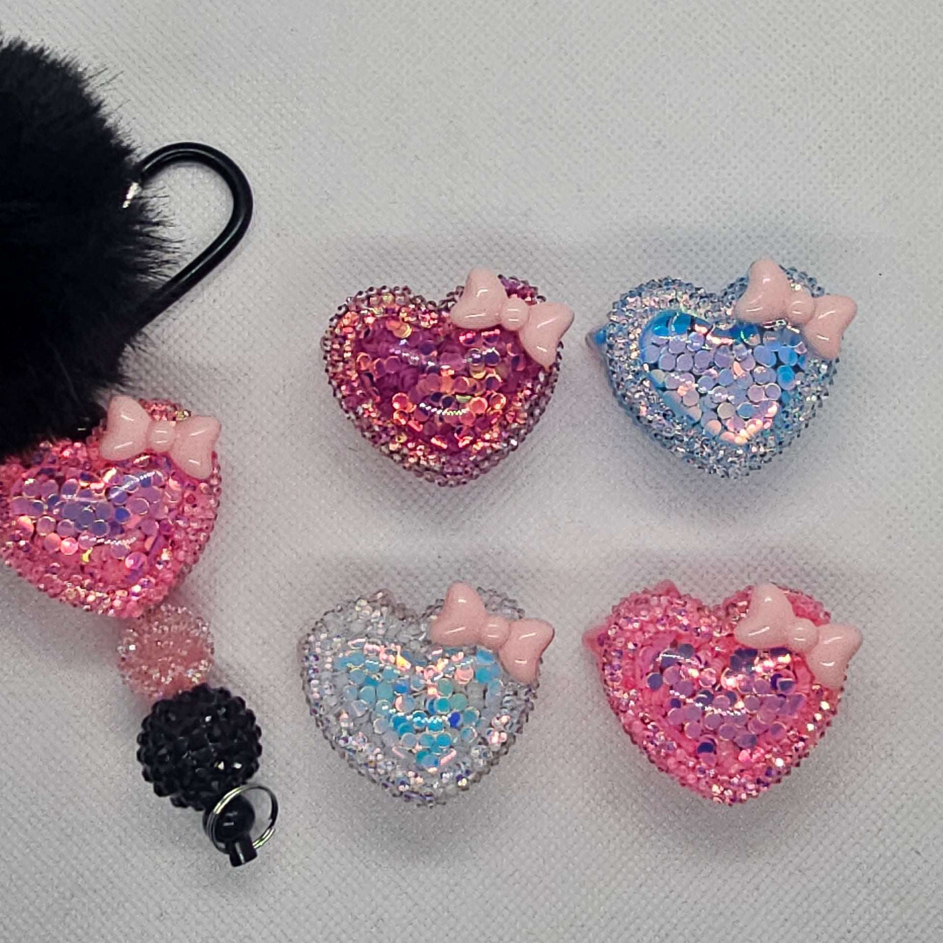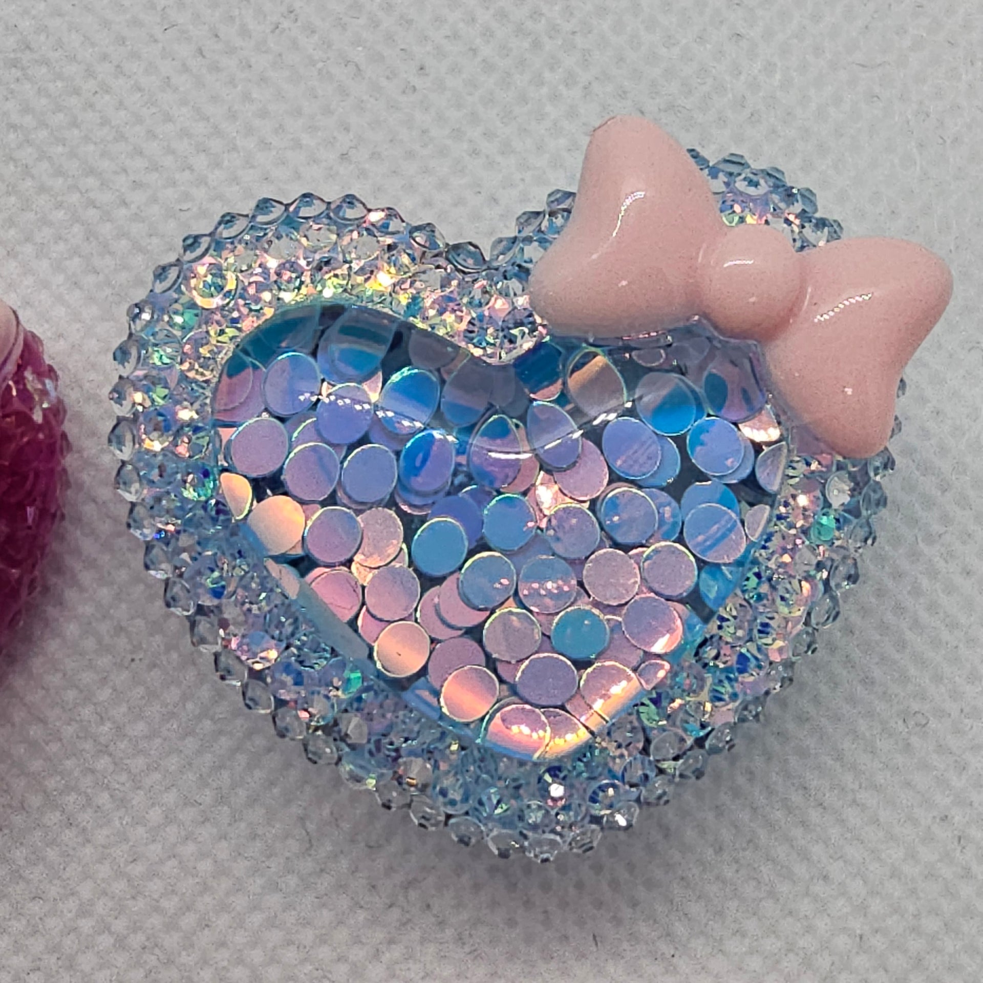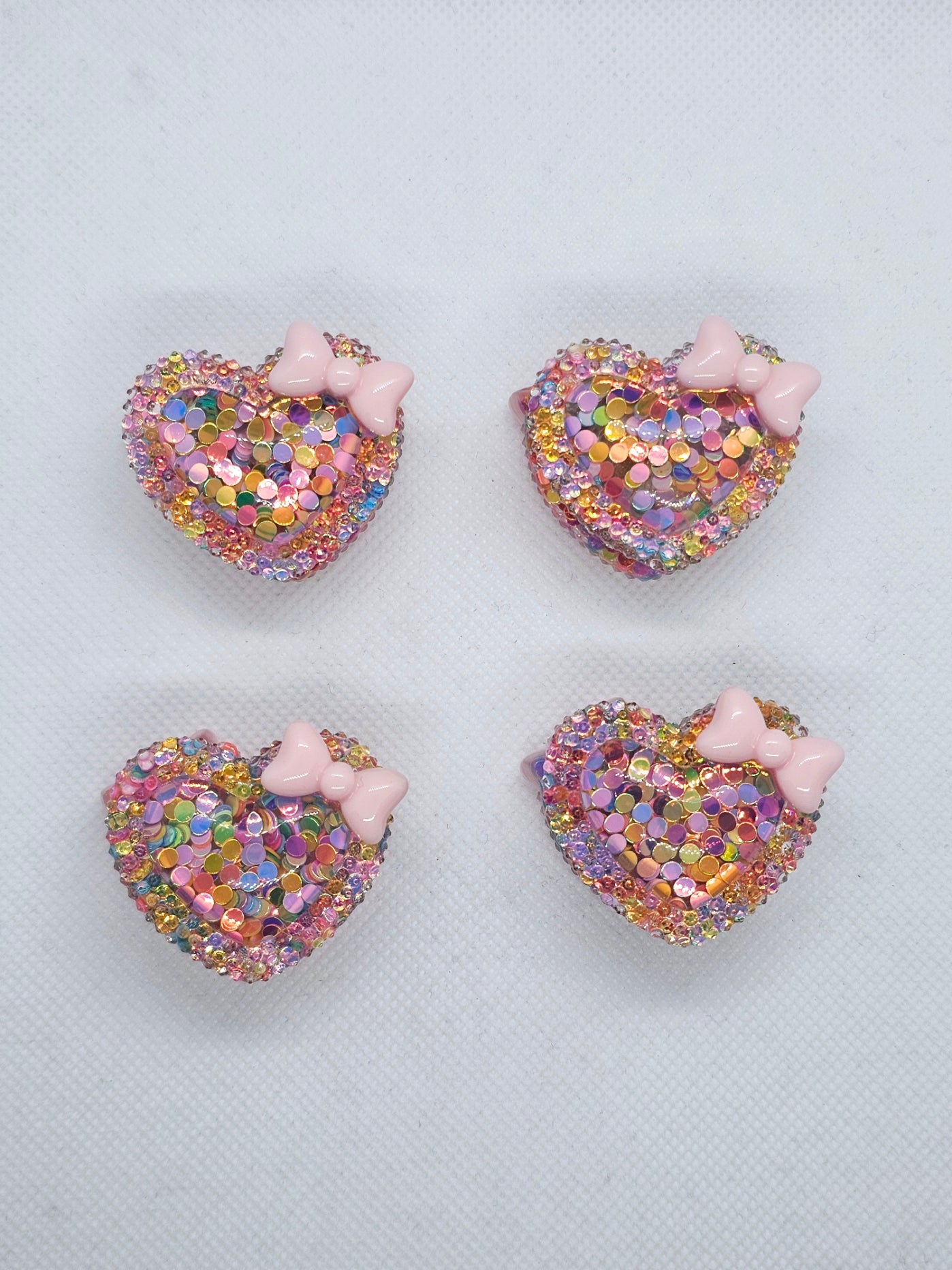 - High-quality acrylic hearts with bows, rhinestones and glitter.