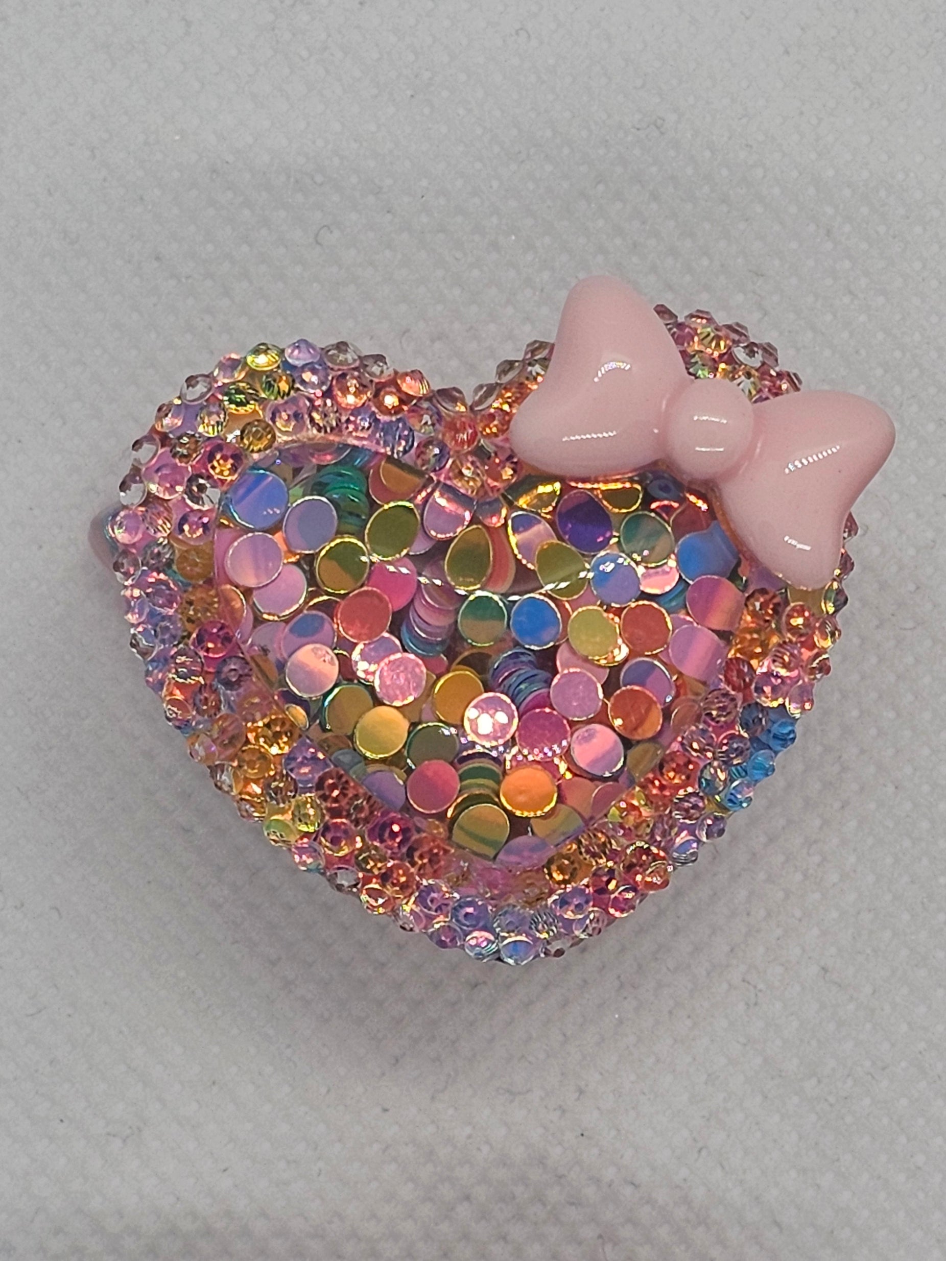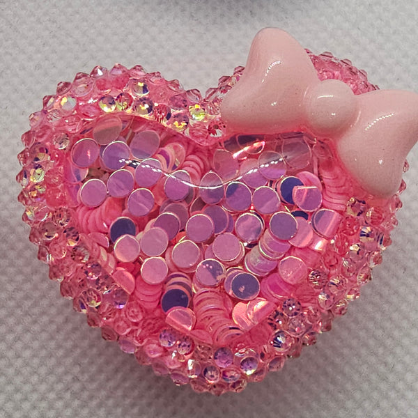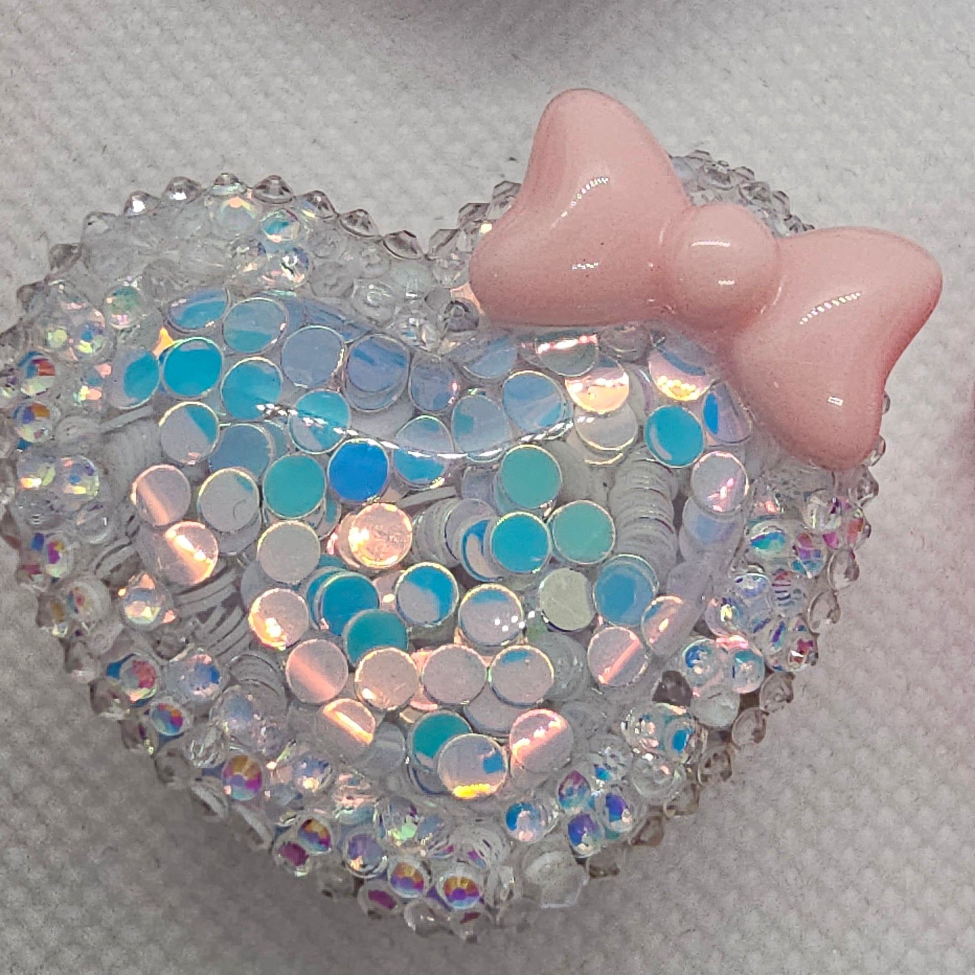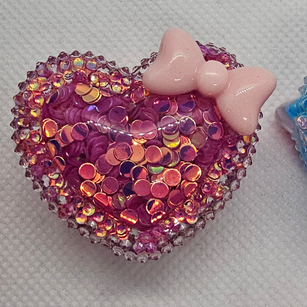 - High-quality acrylic hearts with bows, rhinestones and glitter.