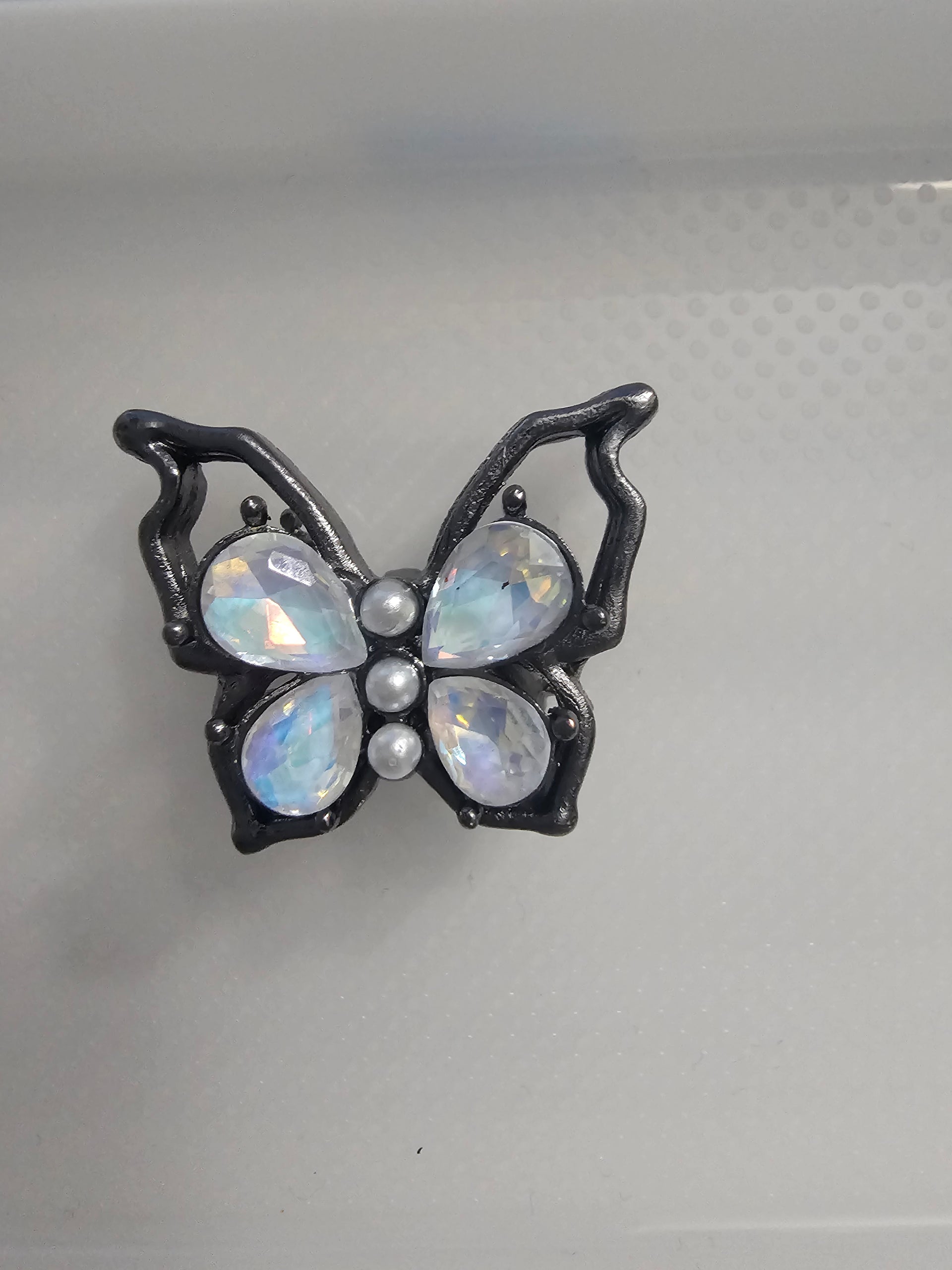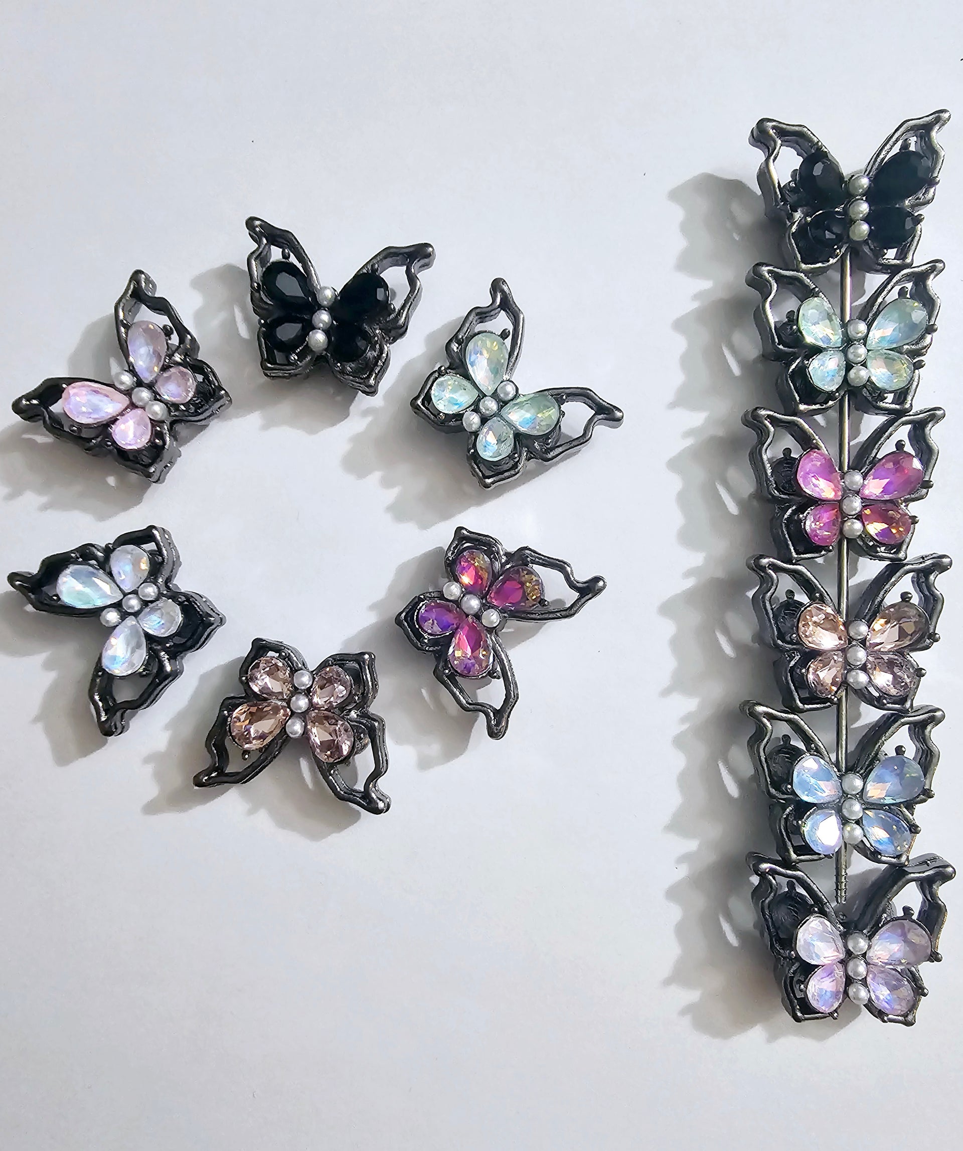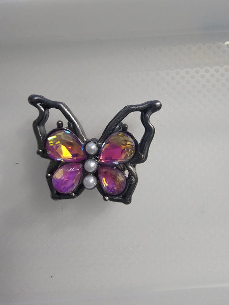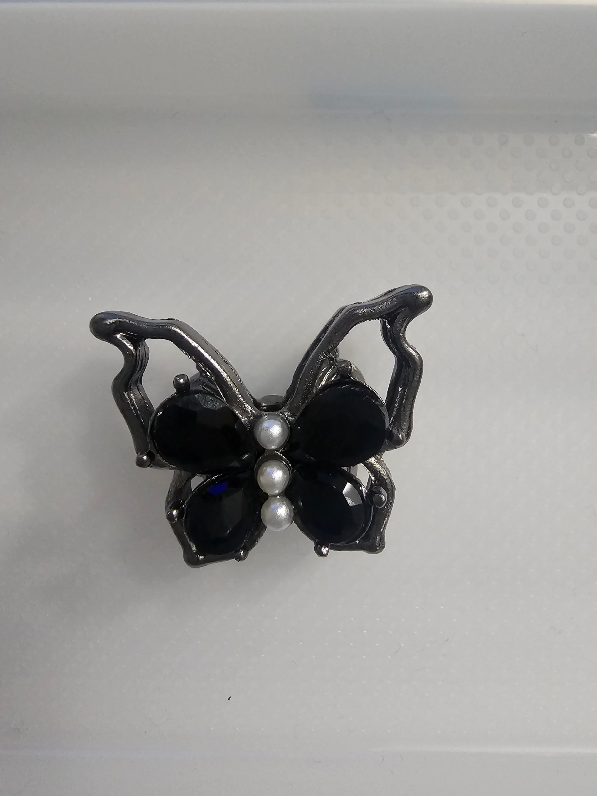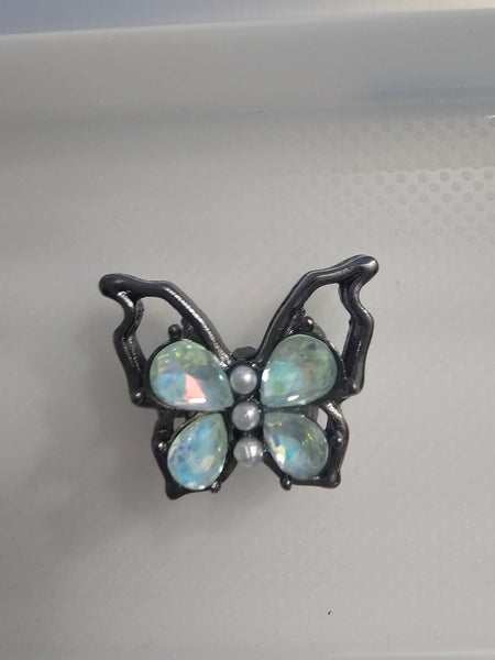 1 pc - Gunmetal Jeweled Butterfly - 1 inch