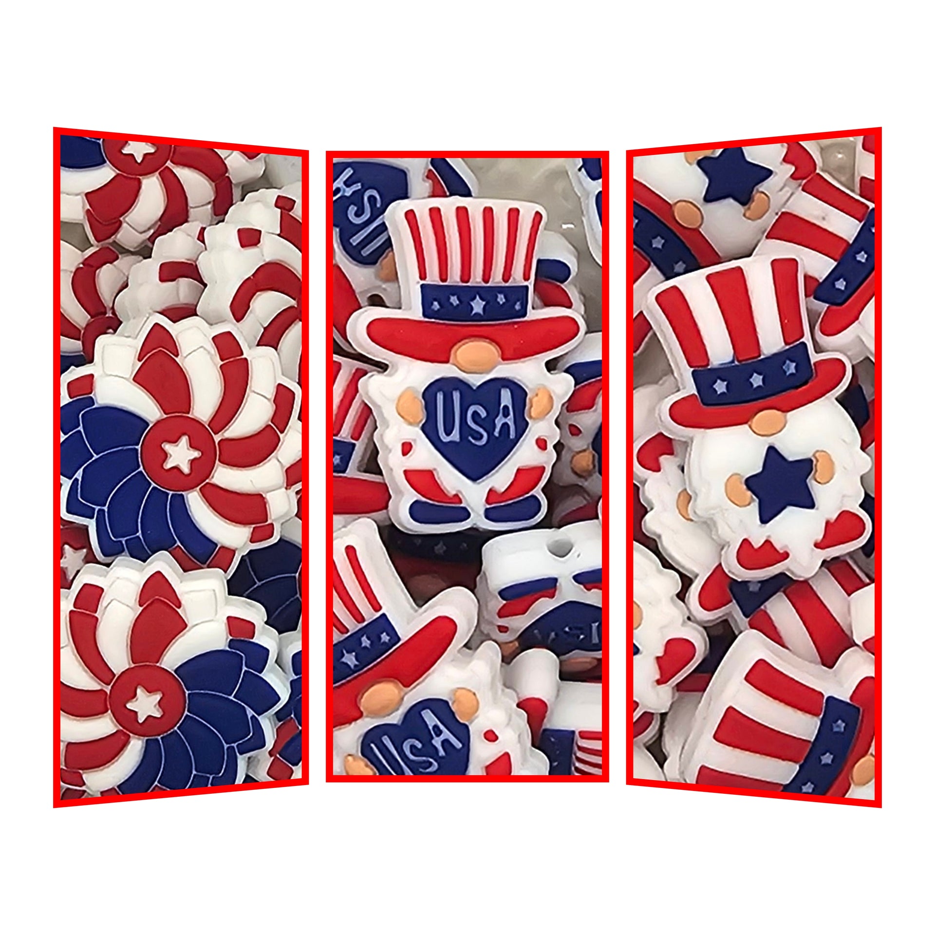 1 pc - 4th of July Focal Beads - Red, White, and Blue
