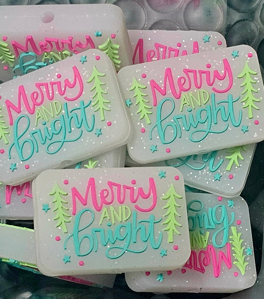 1 pc - Merry & Bright Focal Bead - Glitter - Christmas - DIY - Craft Supplies