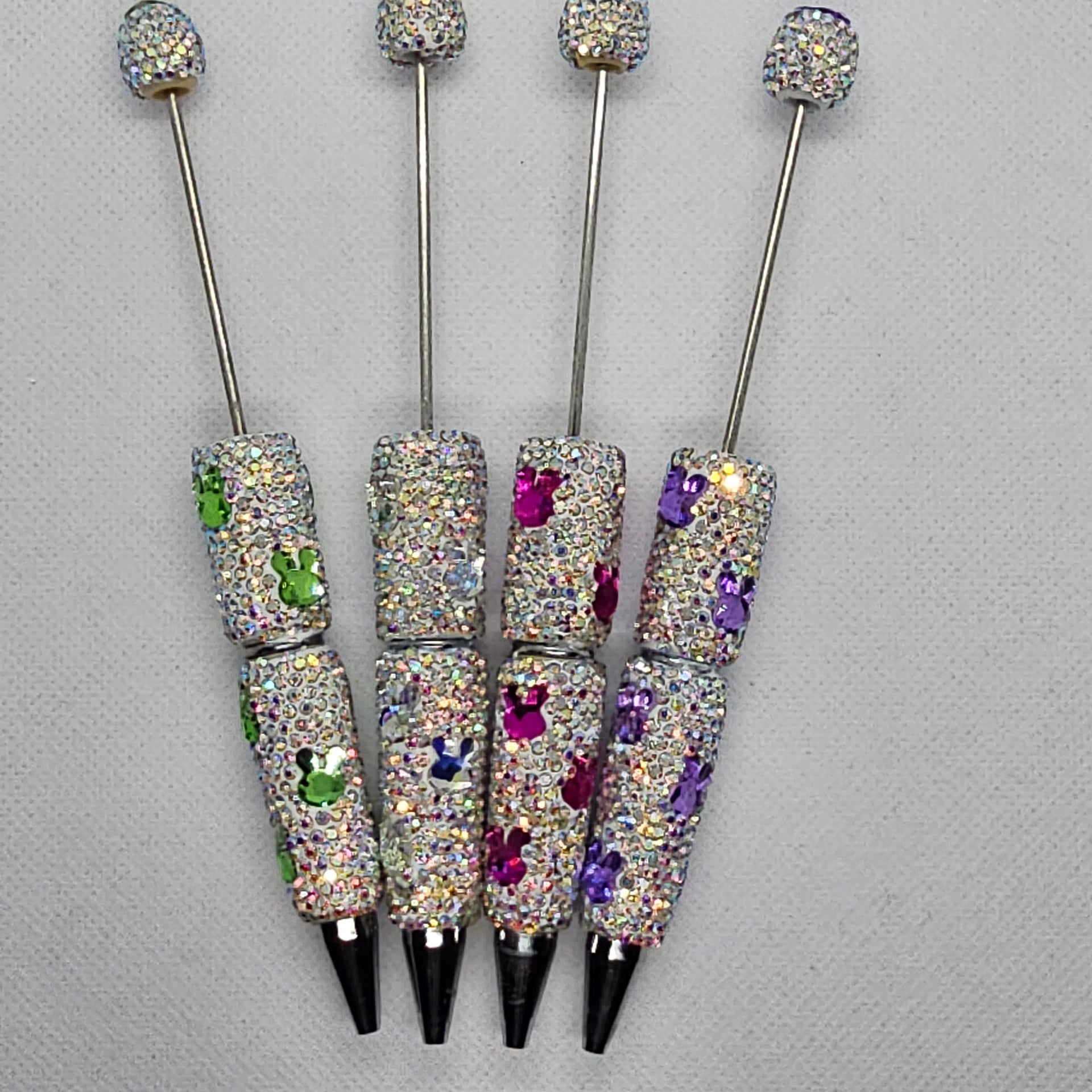 This listing is for ONE Sparkly Rhinestone Bead-able Pen Blank. Pens are plastic with clay wrapping and individually placed rhinestones all done by hand.