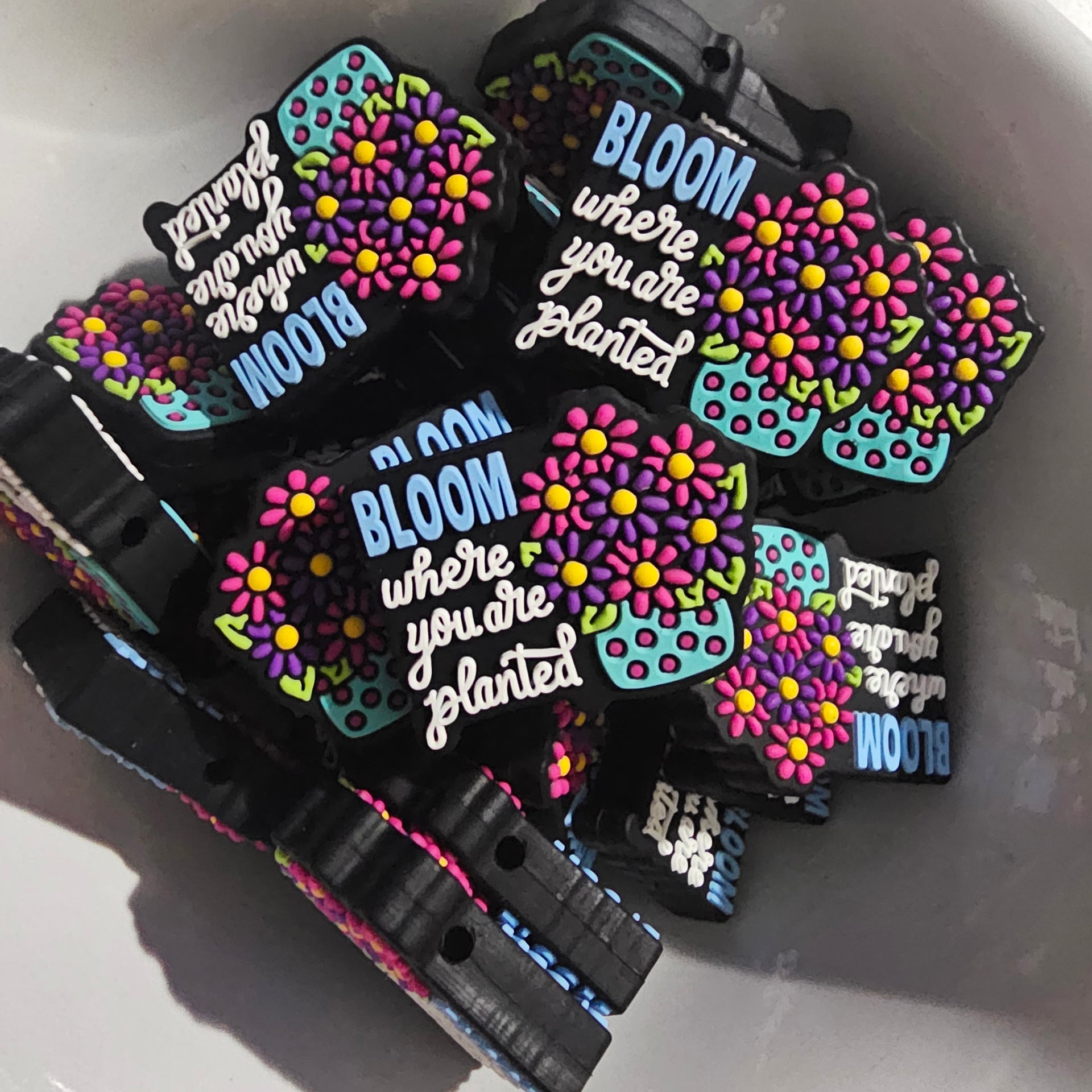 Embrace a positive mindset with our Bloom Where You Are Planted silicone focal bead. Crafted with care, this bead serves as a reminder to find beauty and growth in any situation. With its vibrant colors and durable silicone material, it's the perfect addition to any craft.