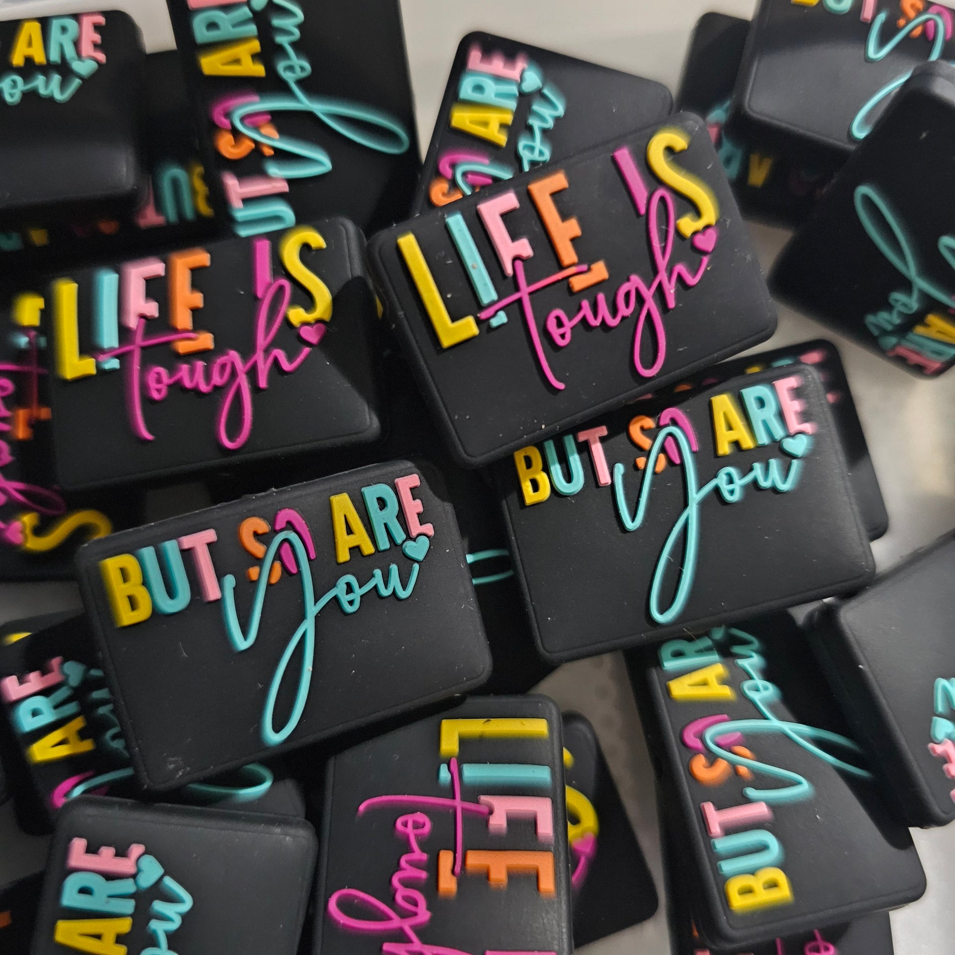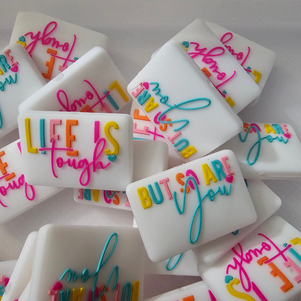 DOUBLE-SIDED - Life Is Tough Silicone Focal Bead - 1 piece