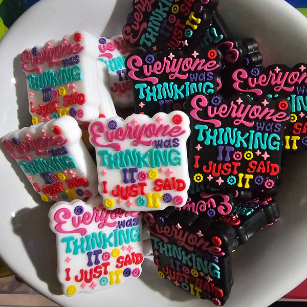 Get ready to make a statement with the Everyone Was Thinking It Focal Bead! With its bold design and playful phrase, this bead is sure to turn heads and spark conversations. Let your personality shine through with this quirky and fun bead.