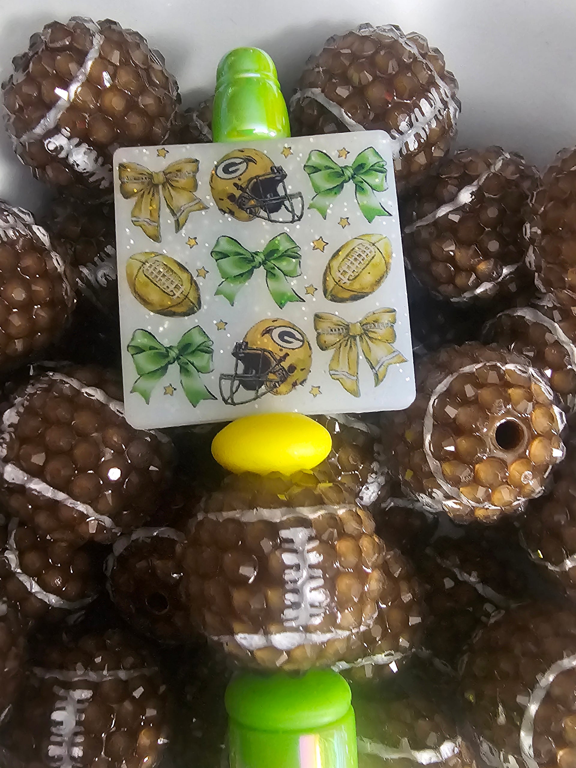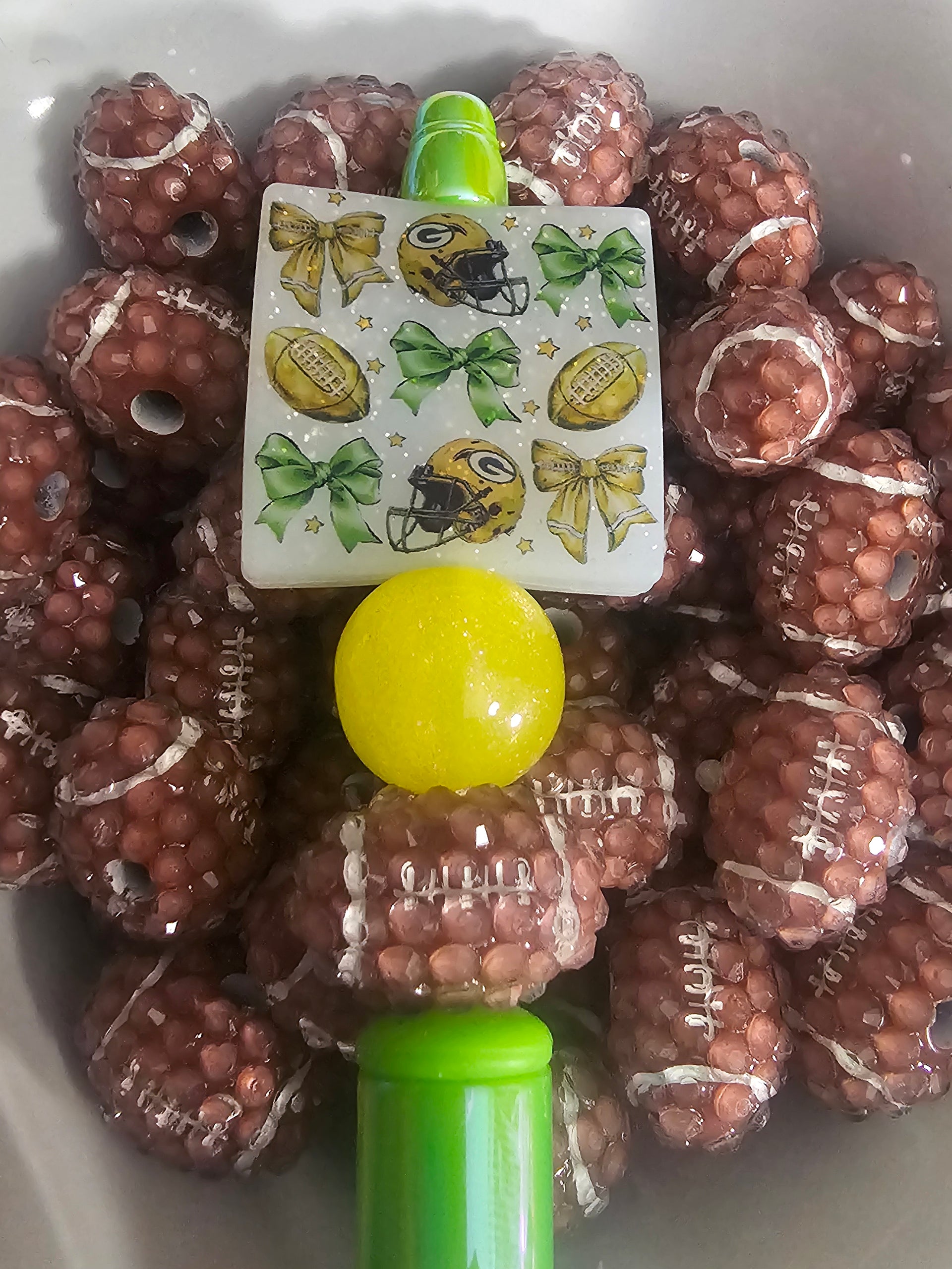 Football shape is 20MM horizontally, and 15MM vertically. These are horizontal beads, and the hole will be top to bottom.