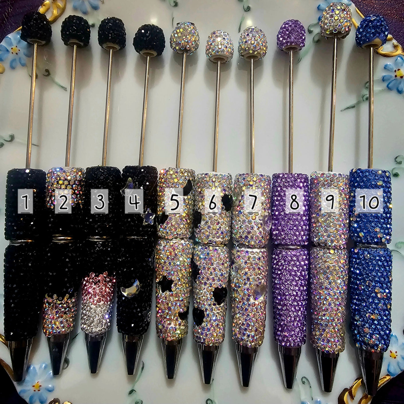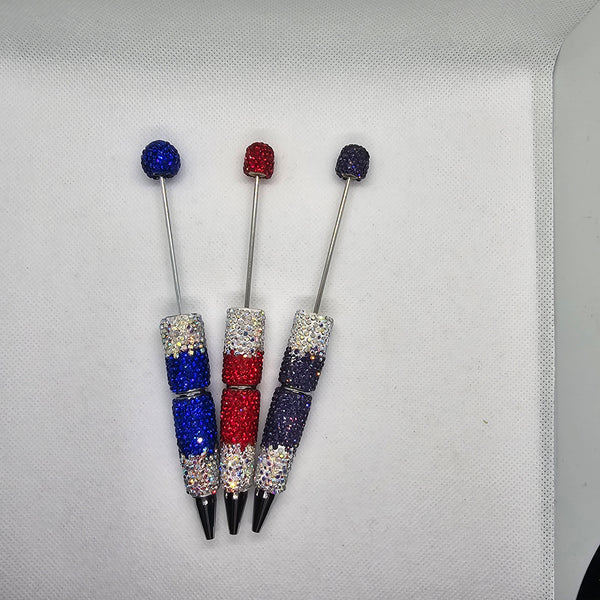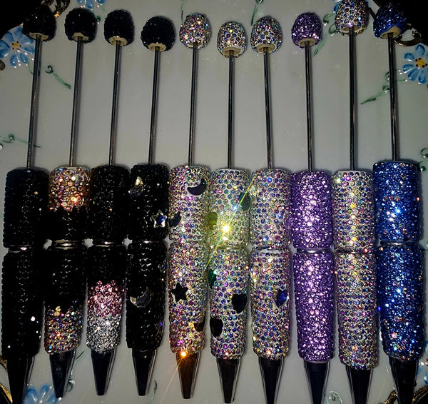 This listing is for ONE Sparkly Rhinestone Bead-able Pen Blank. Pens are plastic with clay wrapping and individually placed rhinestones all done by hand.