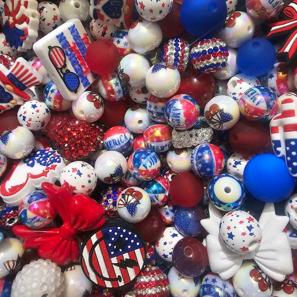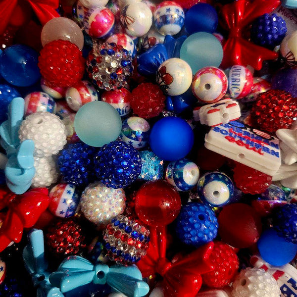 - Mix of focals, acrylic, wood, rhinestone, jelly, bows, and fancy rhinestone clay beads.
