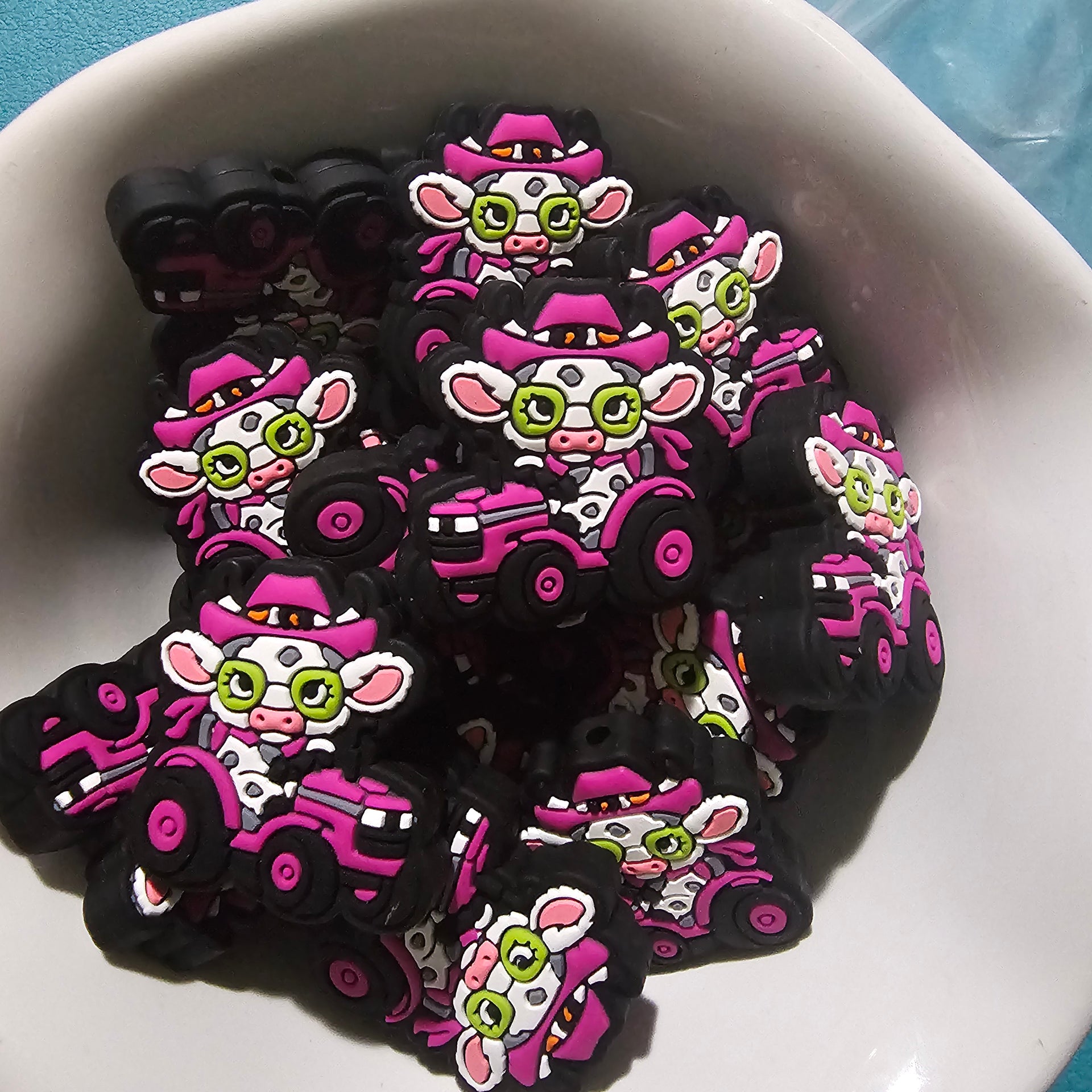 Get moovin' with this Purple Tractor Cow Focal Bead! This cute cow, dressed in vibrant purple, will add a fun and quirky touch to your projects. It's udderly adorable and perfect for any farm or tractor lover. Don't miss out on this unique focal bead!
