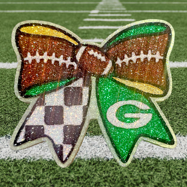 This glittery GB Bow Freshie is the perfect blend of sporty and chic! Designed with a football-inspired bow and shimmering green and gold sparkle, itβs ideal for any Packers fan who loves bold colors and sweet scents.