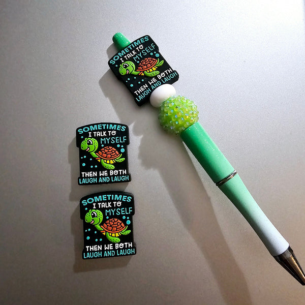 Get ready to giggle with our Sometimes I Talk to Myself focal bead! Made of silicone and adorned with a cute turtle, this bead is perfect for any playful crafter. Laugh and craft. (Not suitable for serious folks.)